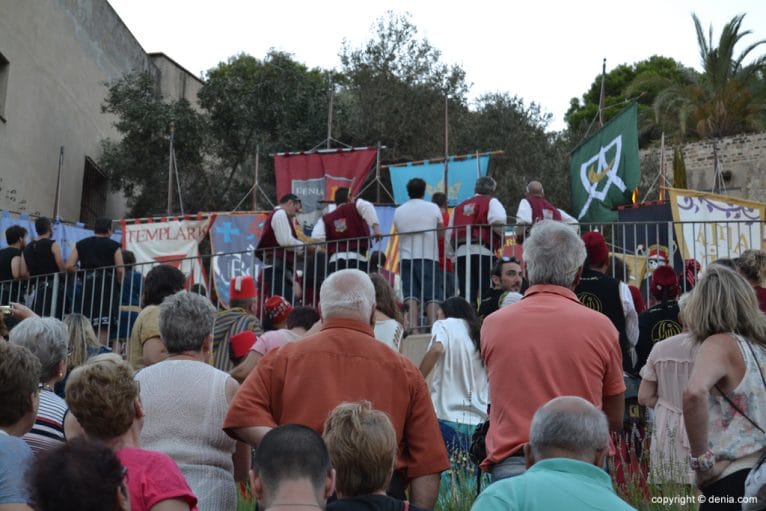 Izada de estandartes en las fiestas de Moros y Cristianos de Dénia.