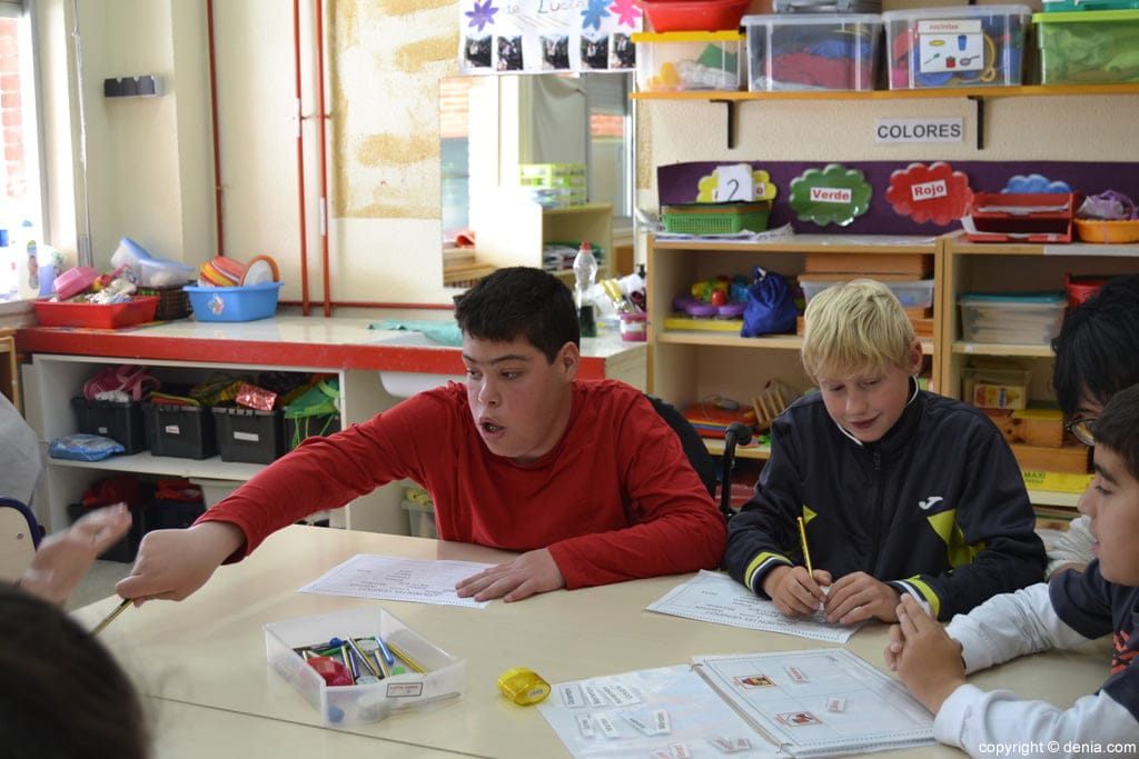26 de marzo de 2014 - 10:08Darío, el encargado del día, y Alamak, rellenan sus fichas. Foto Anterior8 de 16Foto SiguienteVer el artículo original: Un día con los alumnos del Raquel Payà, de todo menos aburrido Comienza el día cantando una canción El encargado del día pasa lista entre sus compañeros Los compañeros se saludan al comenzar el día Las nuevas tecnologías ayudan a los niños a comunicarse en el aula La profesora ayuda a uno de los alumnos Alumnas de Raquel Payà rellenando una ficha de actividades Alumnos del Raquel Payà rellenando una ficha de actividades Alumnos del Raquel Payà rellenando una ficha de actividades Lucía trabajando con su Ipad en clase Alumnos del Raquel Payà rellenando una ficha de actividades Lucía y su profesora Mari Un momento de clase en el Raquel Payà Silvia y Lucía mirando el Ipad Un alumno rellenando su ficha Lucía fregando su recipiente del almuerzo Hora del recreo en el Raquel Payà