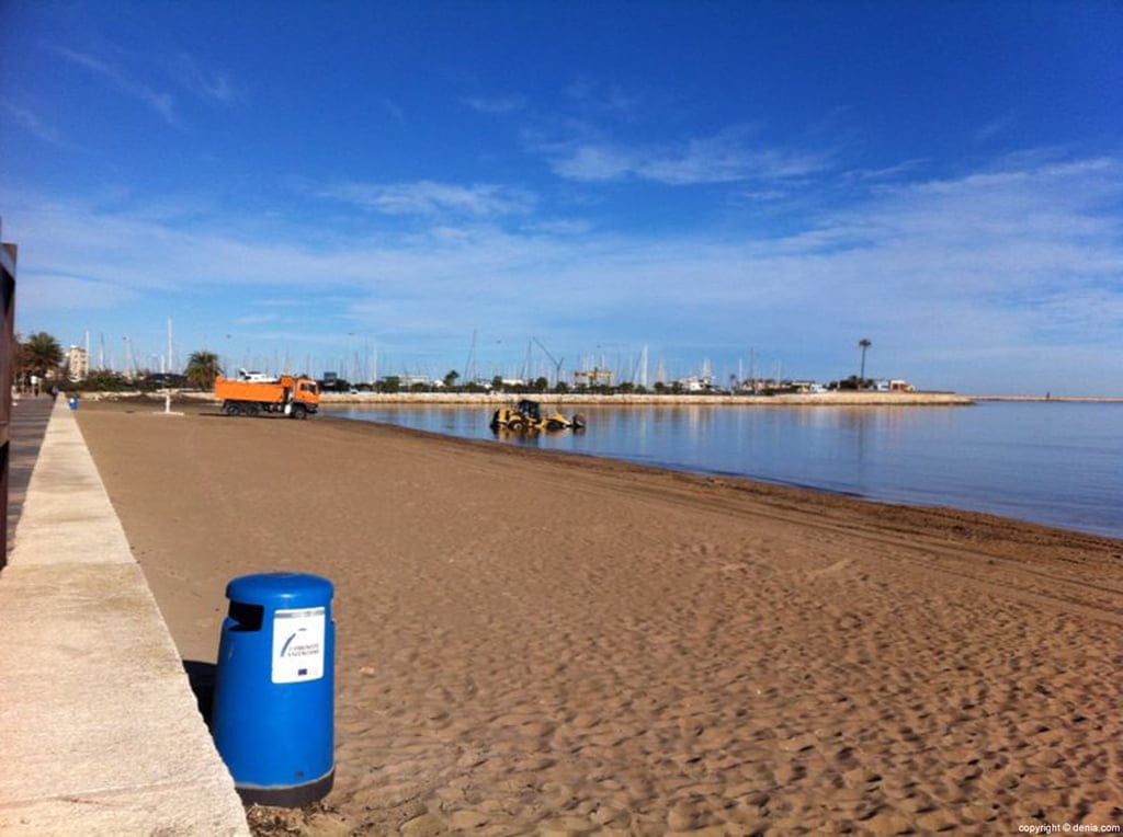 Uno de los tractores de Pavasal, la empresa encargada de la limpieza de las playas de Dénia, encallado en la playa de La Marineta Cassiana.