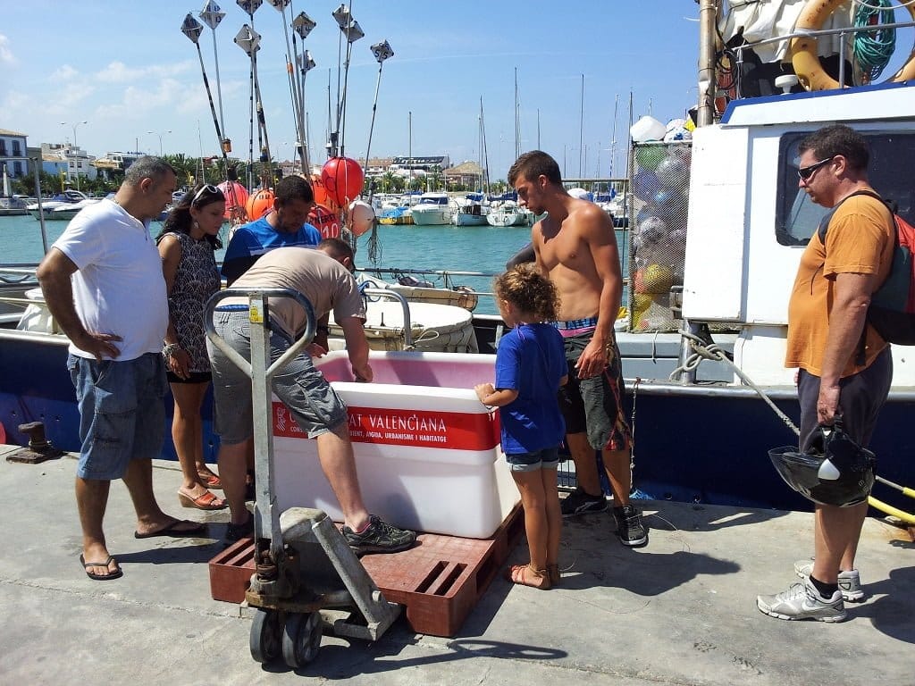 Especialistas del Arca del Mar del Oceanogràfic de Valencia recogieron en Dénia el ejemplar de tortuga boba capturado.