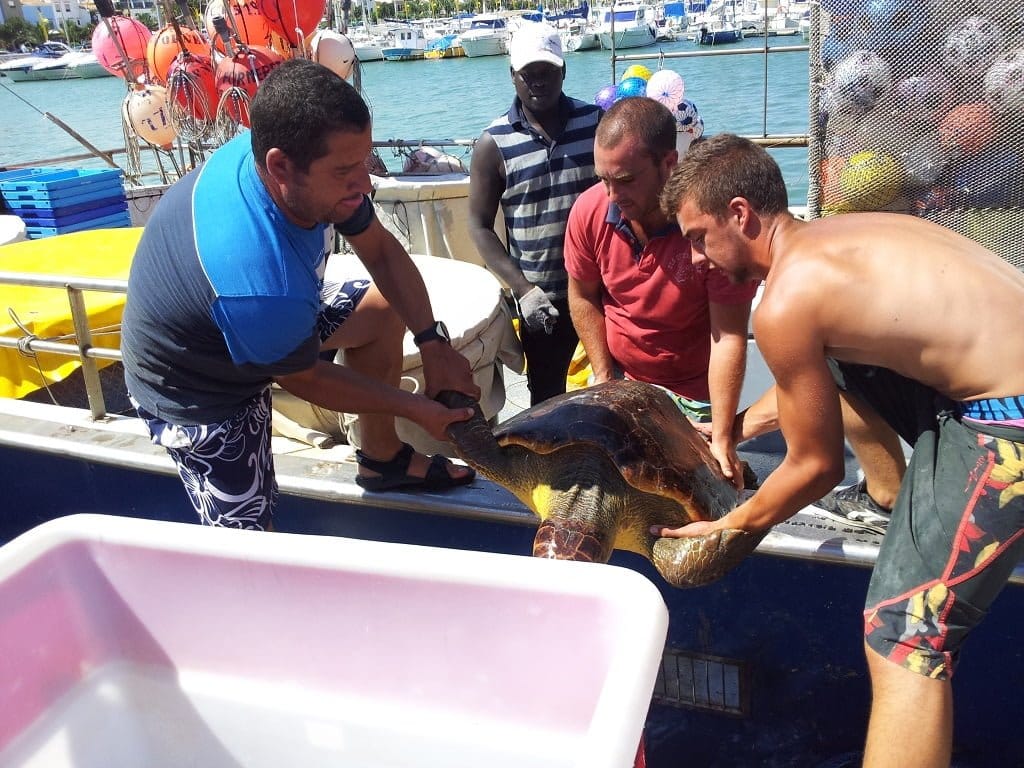 09 de septiembre de 2013 - 16:34Dénia pertenece al programa de recuperación de ejemplares de tortuga de la Generalitat Valenciana. Foto Anterior3 de 4Foto SiguienteVer el artículo original: Una embarcación artesanal dianense recupera una tortuga de 54 kilos de peso Rescatan en Dénia una tortuga hembra de 54 kilos Técnicos del Arca del Mar recogen en Dénia el ejemplar de tortuga boba pescado accidentalmente Un ejemplar de tortuga boba de 54 kilos cae accidentalemnte en las redes de un pesquero artesanal dianense Una embarcación de pesaca rescata una tortuga en aguas de Dénia
