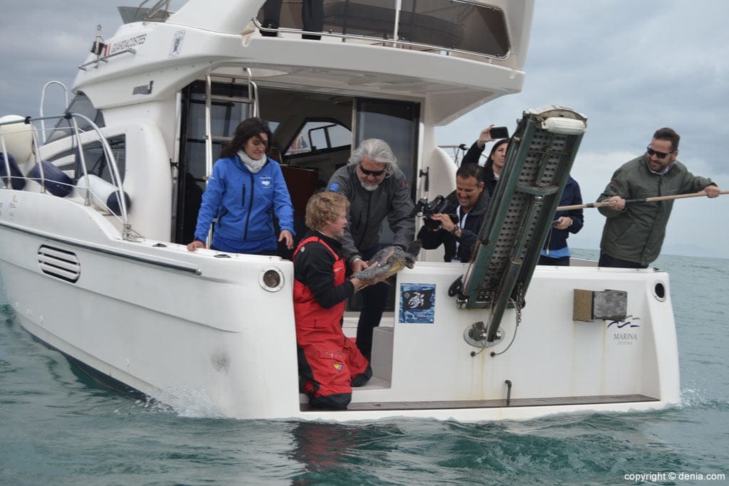 Liberan un ejemplar de tortuga boba durante la celebración del X Salón Náutico de Dénia.