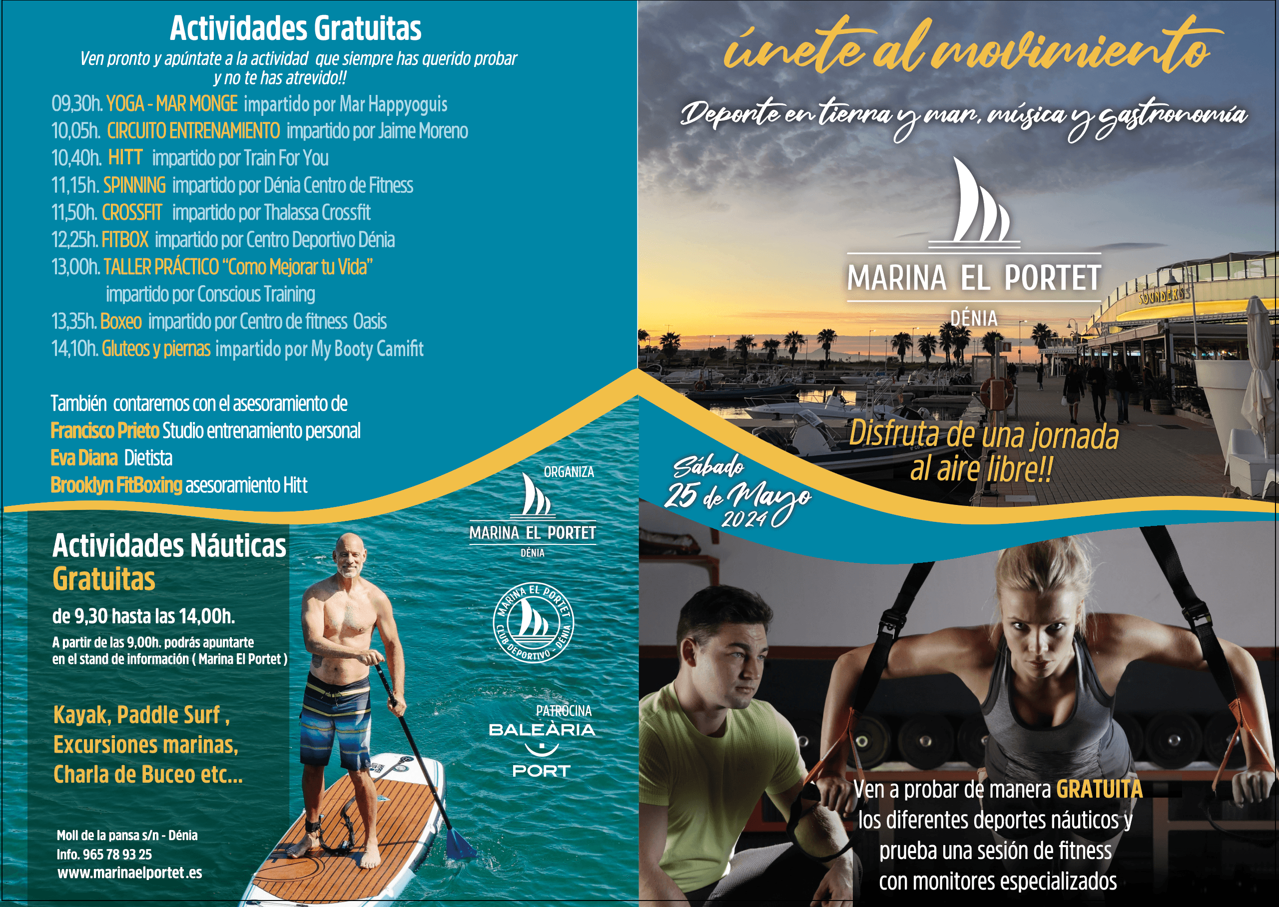 07 de mayo de 2024 - 13:20Vive un día excepcional dedicado al deporte, la música y la gastronomía 1 de 2Foto SiguienteVer el artículo original: Únete al movimiento y disfruta de una jornada completa de actividades acuáticas y deportes saludables Disfruta de una jornada llena de actividades saludables y educativas Únete al movimiento y disfruta de una jornada completa con deportes acuáticos y actividades saludables