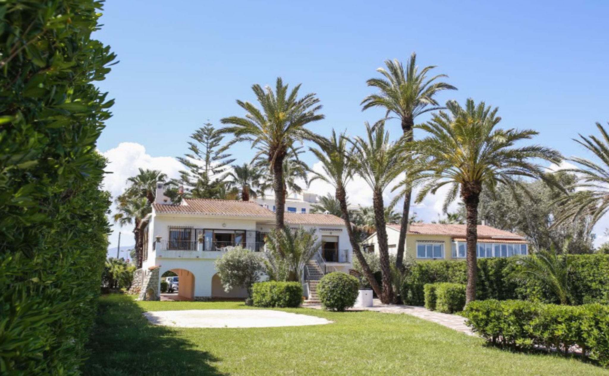 De estilo rústico, con un gran jardín y acceso directo a la playa.