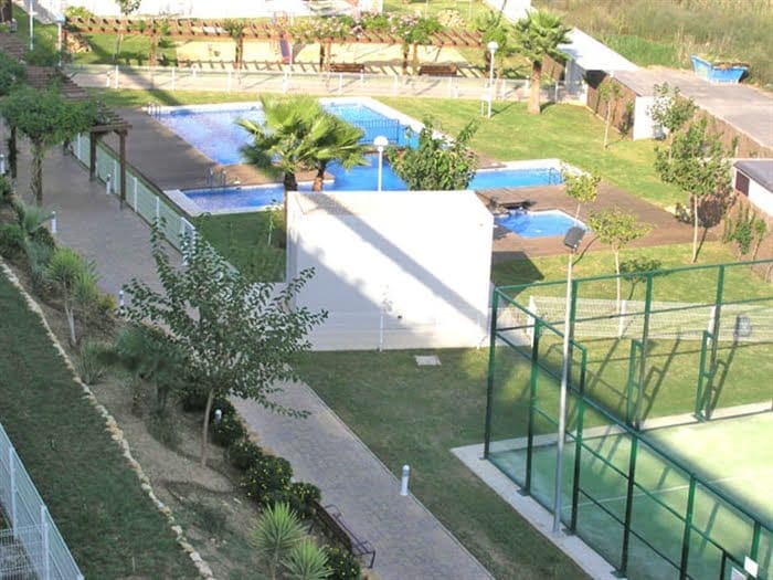 El residencial cuenta con jardines, psicina, pista de padel y conserje.