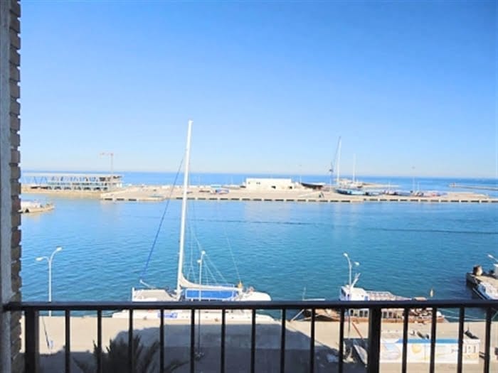 Piso en venta en Dénia, de 50m2 distribuido en salón-comedor con balcón, cocina abierta, 2 dormitorios y 1 baño. Es una 7ª planta con ascensor con bonitas vistas al puerto y ubicado a un paso del centro.