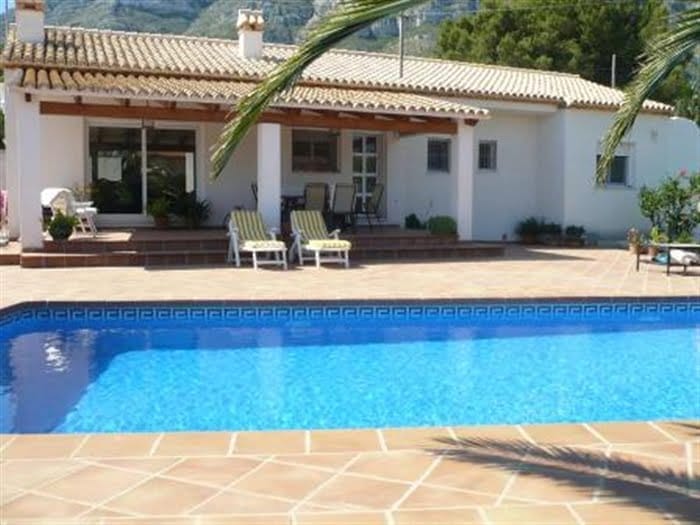 Venta de Chalet de 3 habitaciones y 2 cuartos de baño, en Denia, situado en la Montaña. Con 150 metros cuadrados. Cuenta con piscina, y está amueblado. Dispone de aire acondicionado y calefacción.