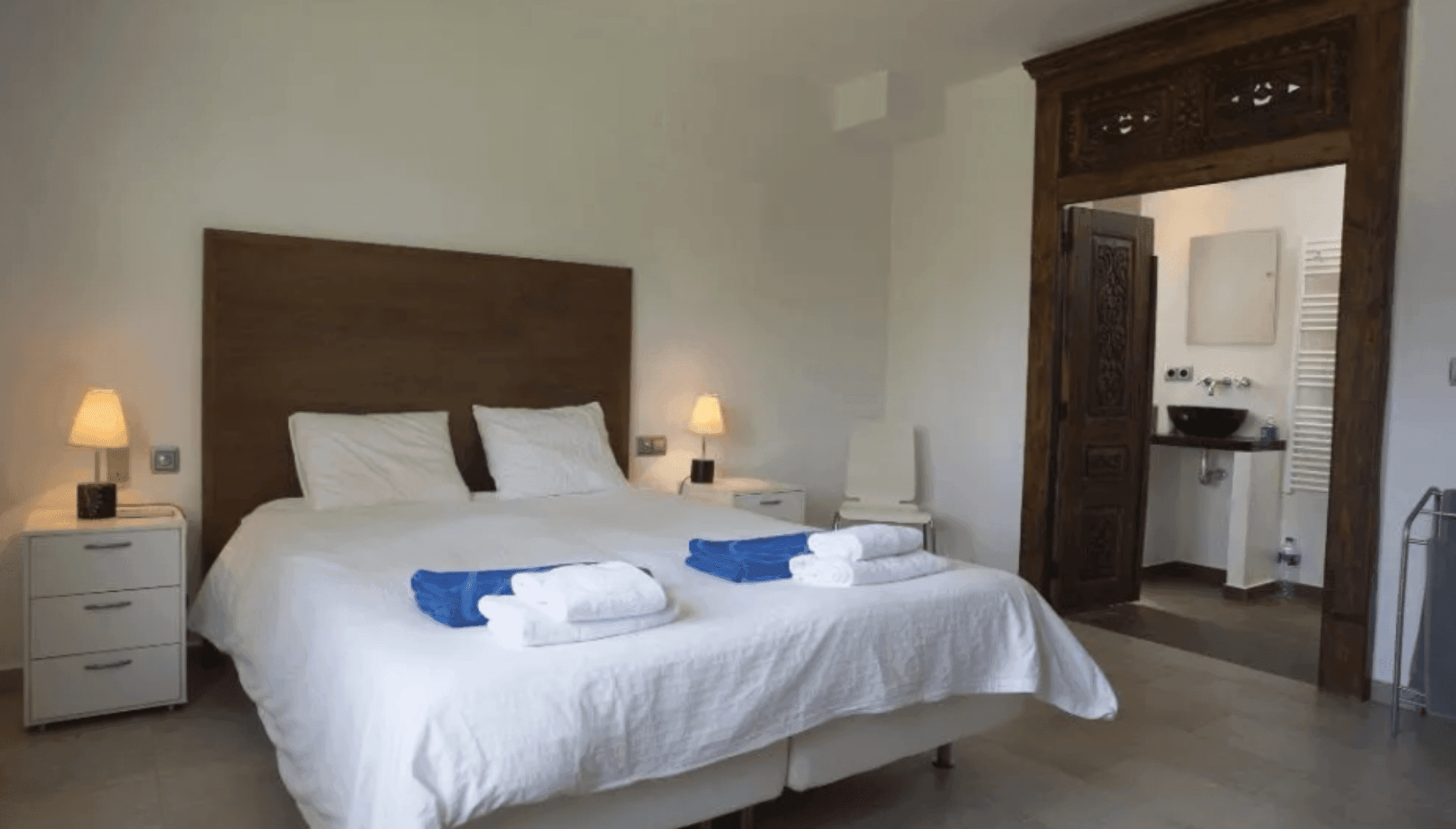 El dormitorio doble cuenta con una gran cama y baño en suite