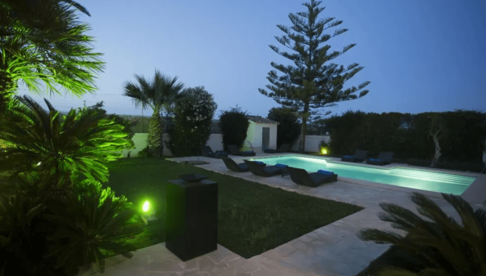 04 de octubre de 2022 - 16:02El exterior de la vivienda se ilumina de noche, creando una atmósfera especial Foto Anterior9 de 15Foto SiguienteVer el artículo original: Villa las Marinas: un alojamiento ideal para cualquier época del año en Dénia Acceso a la terraza desde el salón de la villa Baño de la vivienda con amplio plato de ducha Baño de la vivienda con una moderna bañera y dos lavabos Cocina completa con isla central Conjunto de comedor en el exterior de la vivienda Dormitorio doble con aire acondicionado Dormitorio con baño en suite Fachada de Villa Las Marinas Jardín con piscina iluminado de noche Piscina de la villa Salón de la vivienda con sillones de cuero negro Terraza cubierta de la vivienda con barbacoa Vestidor y baño en suite del dormitorio princiapal Zona de comedor junto al salón Villa Las Marinas en Dénia