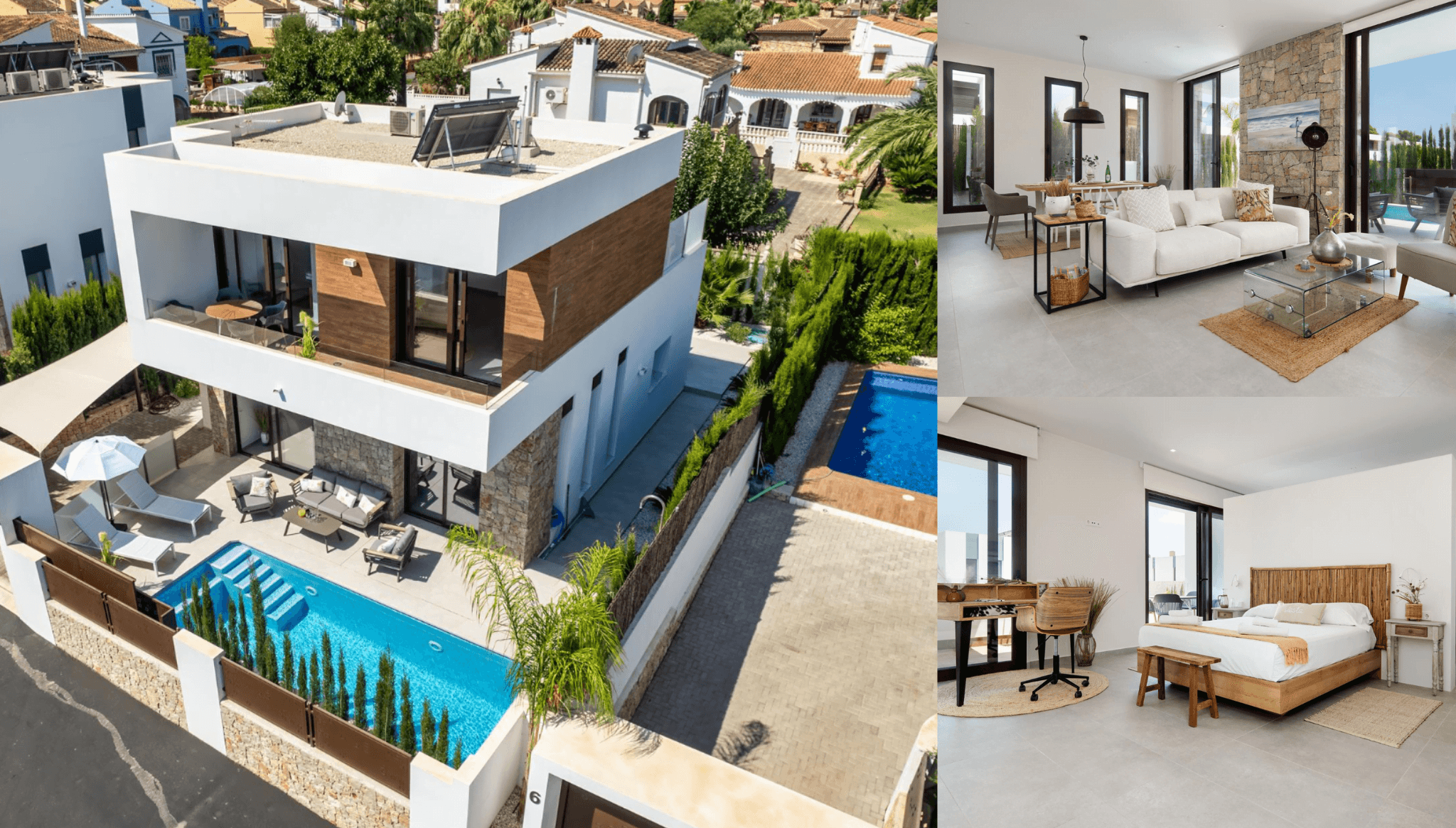 09 de agosto de 2022 - 10:09La propiedad ideal para unas vacaciones de ensueño Foto Anterior18 de 18Ver el artículo original: Villa San Juan: la espectacular villa moderna y con mucho estilo en Dénia perfecta para tus vacaciones Baño del dormitorio principal con ducha y dos lavabos Cocina abierta al salón-comedor Comedor exterior de la vivienda con toldo Dormitorio con baño en suite Dormitorio principal de concepto abierto con escritorio de estilo industrial Escalera interior junto al salón Escritorio de estilo industrial en el dormitorio principal Luminosa cocina abierta de estilo minimalista Moderno baño en suite con inodoro suspendido Piscina de la villa con zona lounge Salón de la vivienda con una gran televisión Salón-comedor con acceso directo a la terraza con piscina Terraza del dormitorio principal con vistas a la montaña Vista aérea de Villa San Juan en Dénia Zona de comedor exterior con barbacoa y tumbonas Zona de comedor interior perfecta para 6 personas Zona lounge de la terraza junto a la piscina Villa San Juan en Dénia – Quality Rent a Villa