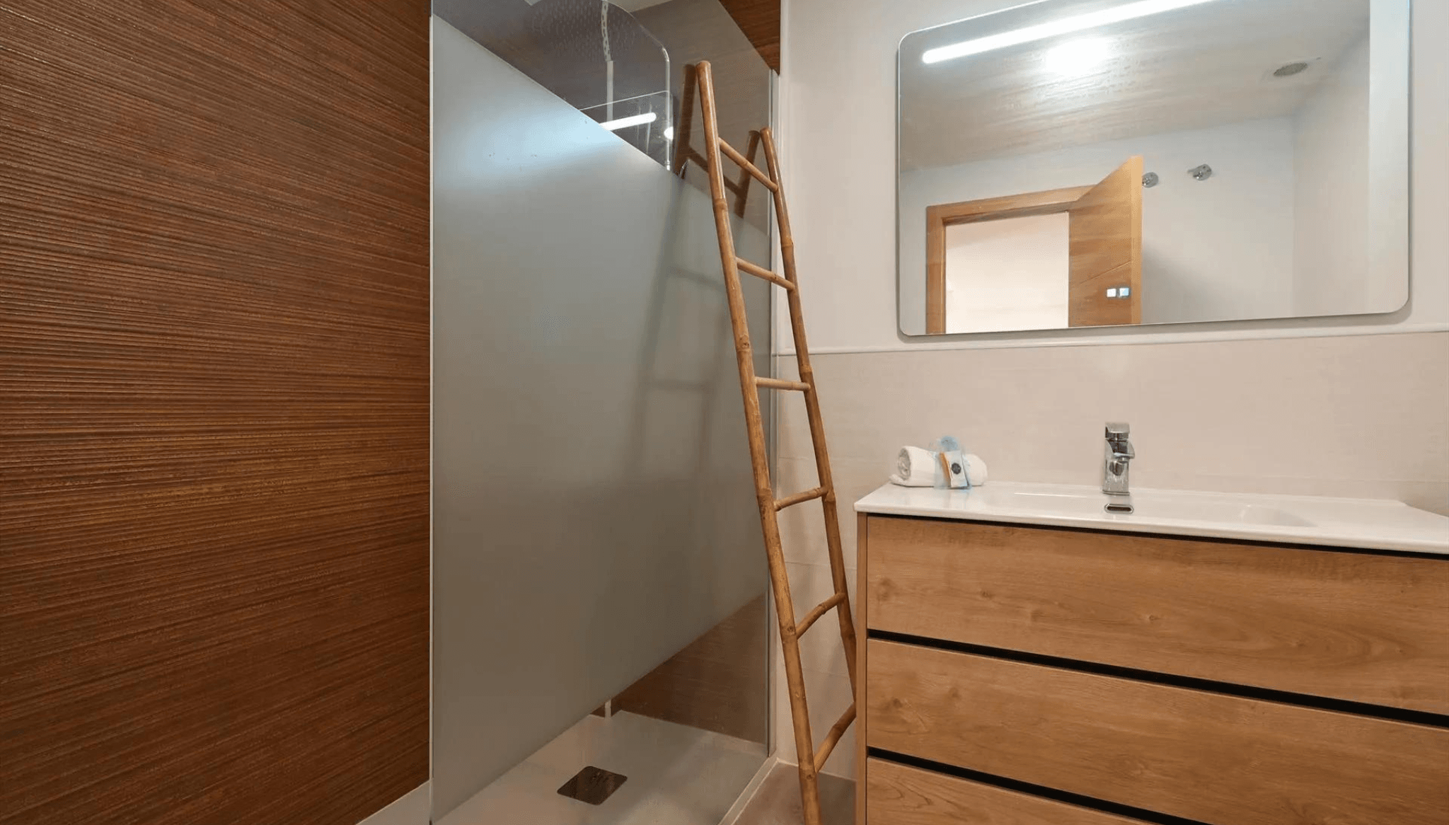 21 de diciembre de 2023 - 15:21Este baño decorado muebles de madera está equipado con una amplia ducha Foto Anterior5 de 11Foto SiguienteVer el artículo original: Vive unas vacaciones navideñas diferentes en el apartamento Nuestra Sorpesa Dormitorio con cama de matrimonio y acceso al jardín Dormitorio principal con aire acondicionado y acceso al jardín Jardín privado en el que disfrutar del sol Luminoso salón comedor con acceso al jardín Baño elegante y funcional con una amplia ducha Cocina minimalista totalmente equipada Moderno salón comedor en apartamento Nuestra sorpresa Piscina comunitaria para disfrutar junto al Apartamento Nuestra Sorpresa Sala de estar minimalista con televisión y acceso al jardín Terraza cubierta en la que desayunar Vacaciones únicas en Denia en apartamento Nuestra Sorpresa