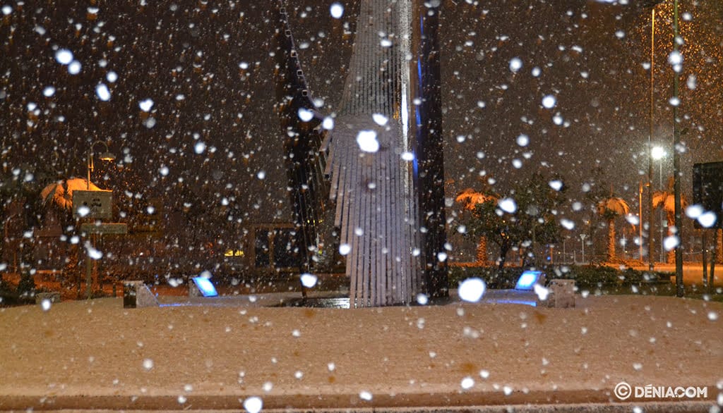 16 de enero de 2020 - 09:43 Foto Anterior2 de 4Foto SiguienteVer el artículo original: ¿Vuelve la nieve a Dénia y la Marina Alta? Muñeco de nieve en ela playa Raset Rotonda plaza Benidorm nevada Nieve en el puerto Nieve en la explanada Cervantes